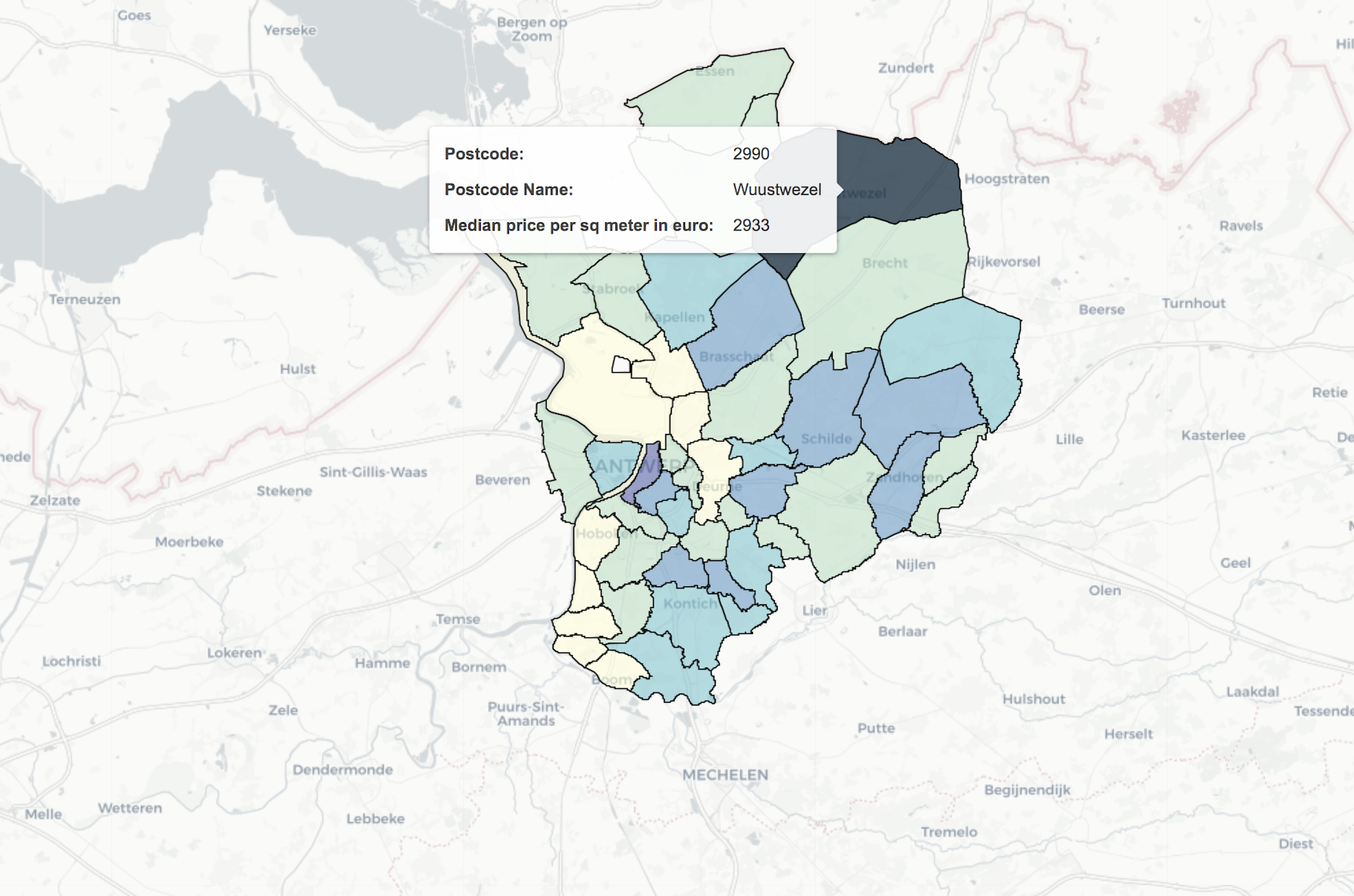 Visualize real estate prices of different neighborhoods using the Folium Choropleth map